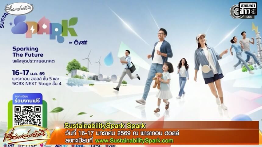 งาน Sustainability Spark by PTT Group 2026 - SPARKING THE FUTURE พลังจุดประกายอนาคต พบกับการเชื่อมโยงองค์ความรู้ และการผนึกพลังครั้งสำคัญของผู้เชี่ยวชาญด้านพลังงาน เทคโนโลยี นวัตกรรมระดับโลก พร้อมด้วยนโยบายและกลไกการบริหารจัดการการเปลี่ยนแปลงสภาพภูมิอากาศ ของภาคส่วนต่าง ๆ เพื่อร่วมกันปลดล็อกศักยภาพและขับเคลื่อนประเทศไทย สู่ Net Zero อย่างเป็นรูปธรรม วันศุกร์ที่ 16 และ วันเสาร์ที่ 17 มกราคม 2569 เวลา 09.00-17.00 น. ณ พารากอน ฮอลล์ ชั้น 5 และ SCBX NEXT TECH ชั้น 4