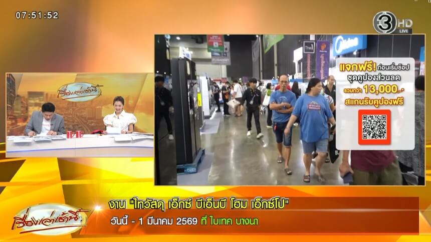 เริ่มแล้ว! งาน 'ไทวัสดุ เอ็กซ์ บีเอ็นบี โฮม เอ็กซ์โป' งานใหญ่ โปรแรงเพื่อคนรักบ้าน วันนี้ -1 มี.ค.69