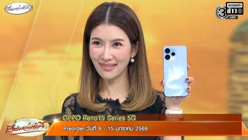 ผู้โชคดีเรื่องเล่าเช้านี้ วันศุกร์ที่ 9 มกราคม 2569 ได้รับโทรศัพท์มือถือจาก Oppo (Oppo Reno 15 / 5G สีฟ้า)