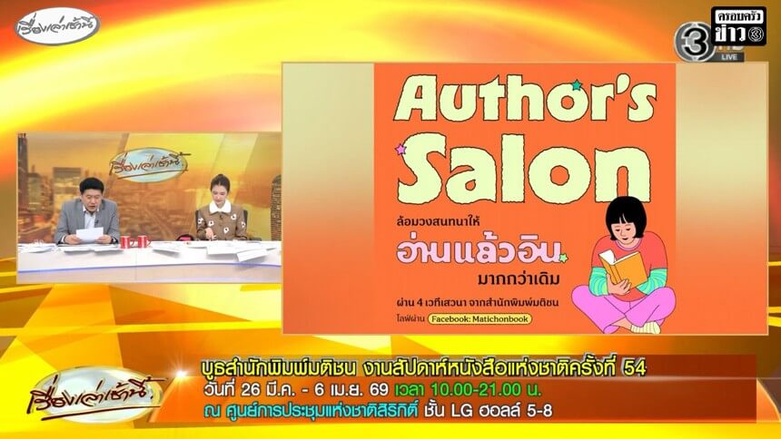 งานสัปดาห์หนังสือแห่งชาติ ครั้งที่ 54 ตั้งแต่วันที่ 26 มีนาคม - 6 เมษายน 2569 ที่ศูนย์การประชุมแห่งชาติสิริกิติ์ 'สำนักพิมพ์มติชน' บูธ J02 มาในธีมอ่านแล้วอิน ชวนทุกคนมาสัมผัสบรรยากาศของการอ่านที่อินแบบเต็มพิกัด ผ่านองค์ประกอบของเรื่องราวที่ทำให้การอ่านไม่ได้เป็นเพียงแค่กิจกรรม แต่คือพื้นที่แห่งประสบการณ์ ที่ถ่ายทอดบรรยากาศความอิน และชวนให้คุณรู้สึกเหมือนกำลังเดินทางเข้าไปในโลกแห่งเรื่องราวของหนังสือแต่ละเล่ม มีโปรโมชั่นพิเศษ หนังสือลด 15-20% และโปรโมชั่น Step ที่มาพร้อมของแถมลวดลายน่ารัก