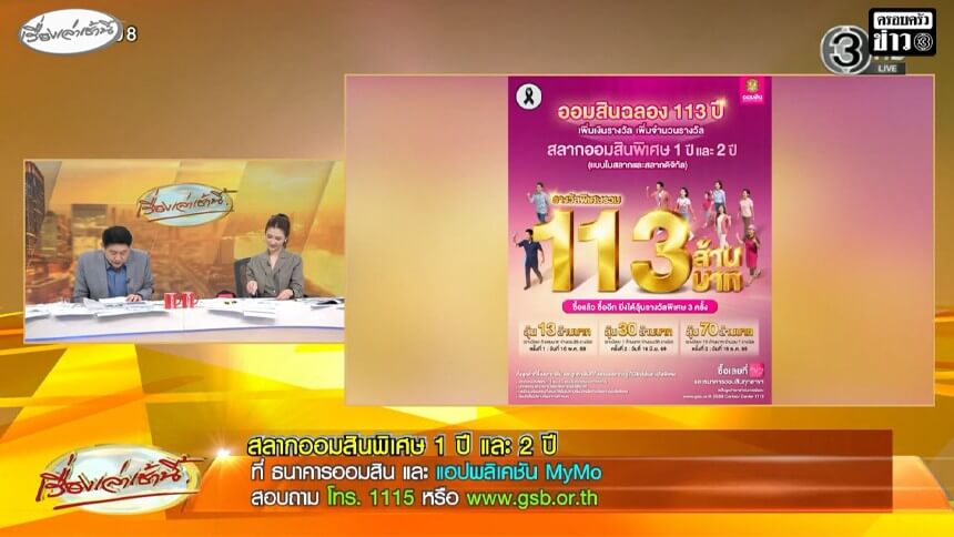 'ออมสิน' ฉลอง 113 ปี เพิ่มเงินรางวัลพิเศษรวม 113 ล้าน กับสลากออมสินพิเศษ 1 ปี และ 2 ปี
