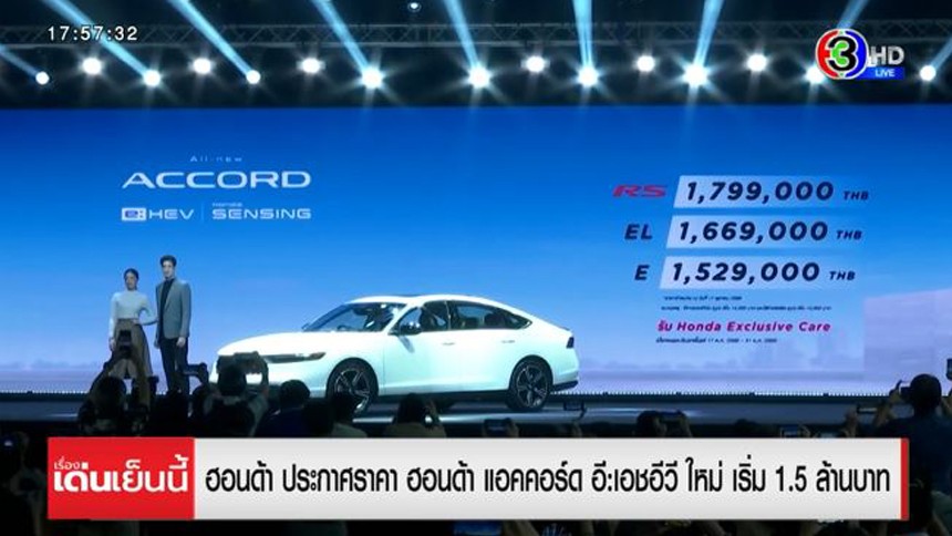 'ฮอนด้า' ประกาศราคา ฮอนด้า แอคคอร์ด อี:เอชอีวี ใหม่ เริ่ม 1.5 ล้านบาท