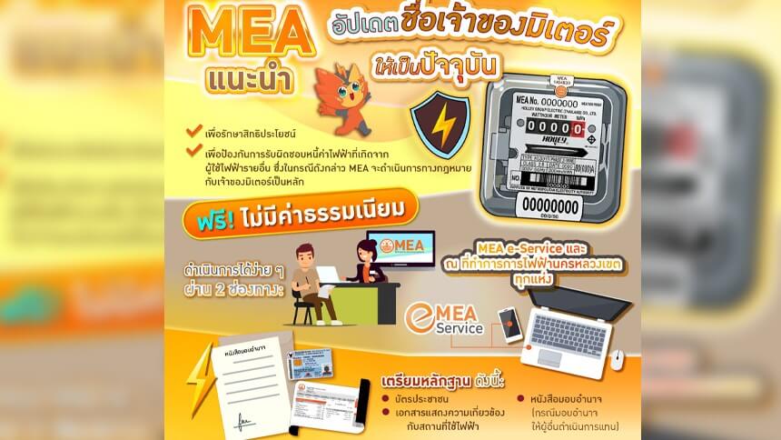 MEA แนะนำผู้ใช้ไฟฟ้าอัปเดตชื่อเจ้าของมิเตอร์ รักษาสิทธิประโยชน์ ป้องกันรับภาระหนี้จากผู้อื่น