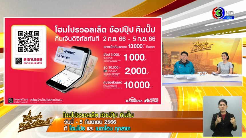 โฮมโปรวอลเล็ต ช้อปปุ๊บ คืนปั๊บ คืนเงินดิจิทัลทันที วันนี้ - 5 ก.ย.66
