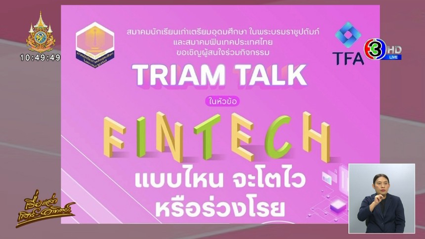 'Triam Talk' กิจกรรมที่จัดโดยสมาคมนักเรียนเก่าเตรียมอุดมศึกษาในพระบรมราชูปถัมภ์ (สนตอ.) และสมาคมฟินเทคประเทศไทย มุ่งเผยแพร่ความรู้อันเป็นประโยชน์และทันยุคสมัยแก่สมาชิกของ สนตอ. และประชาชนทั่วไป พร้อมนำเสนอเรื่องที่คนทั่วโลกกำลังไล่ตามหาโซลูชั่นให้ทันเกม "FINTECH แบบไหนจะโตไว หรือร่วงโรย"