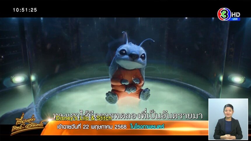 'Disney's Lilo & Stitch' ภาพยนตร์ไลฟ์แอคชั่นฟอร์มยักษ์ เรื่องราวความสนุก สุดป่วน และซาบซึ้งไปกับมิตรภาพระหว่าง ลีโล เด็กสาวชาวฮาวายผู้โดดเดี่ยว และ สติทช์ สัตว์ต่างดาวแสบซ่า ที่หลบหนีมายังโลก ไม่เพียงแต่จะสร้างเสียงหัวเราะจากความซนของสติทช์ ยังทำให้ซึ้งไปกับความหมายของครอบครัว เข้าฉายวันที่ 22 พฤษภาคม 2568 ในโรงภาพยนตร์