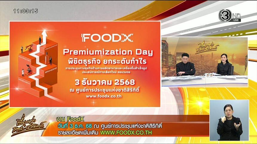 งาน FoodX Business of Food Forum - Premiumization Day การประชุมทางธุรกิจ ด้านการผลิตอาหารและเครื่องดื่มสำเร็จรูป จัดขึ้นวันที่ 3 ธันวาคม 2568 ณ ศูนย์การประชุมแห่งชาติสิริกิติ์ ลงทะเบียน และติดตามรายละเอียดเพิ่มเติม : www.foodx.co.th
