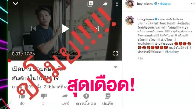 เป็นอีกหนึ่งหนุ่มมากความสามารถสำหรับหนุ่ม บอย พิษณุ ที่งานนี้เจ้าตัวถึงกับหัวร้อนเลยทีเดียว เพราะมีคนแอบอ้างทำช่องยูทูบปลอม