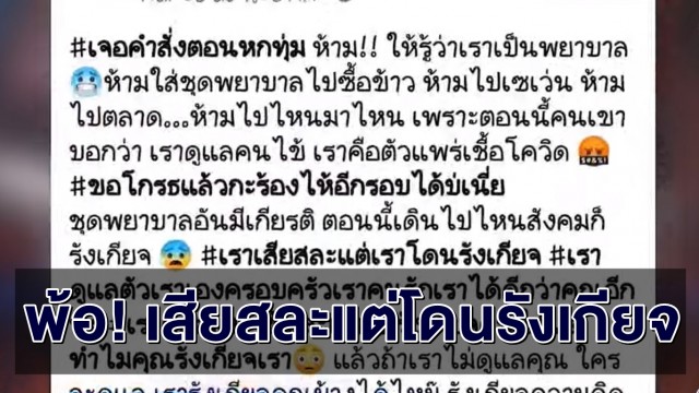 พยาบาลสาว โพสต์ท้อถูกสังคมรังเกียจ-สั่งห้ามใส่ชุดพยาบาลไปซื้อข้าว หวั่นนำเชื้อโรคไประบาด