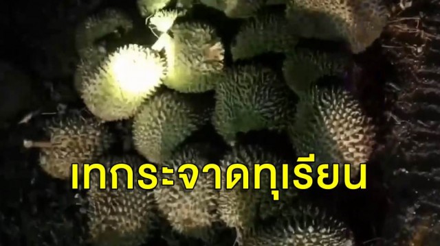 รถกระบะขนทุเรียน ยางระเบิดพลิกคว่ำ ทุเรียนเกลื่อนถนนระยอง