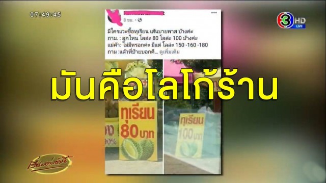 ปรับ 200! ร้านทุเรียนโคราชติดป้ายโลละ 80 อ้างเป็นโลโก้ร้าน ทำคนเข้าใจผิด
