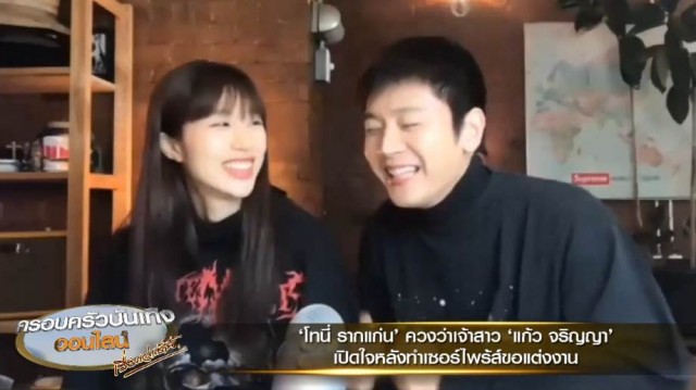 โทนี่ รากแก่น ควงว่าเจ้าสาว แก้ว จริญญา เปิดใจหลังทำเซอร์ไพรส์ขอแต่งงาน โทนี่ โชวหวานบอกมั่นใจตั้งแต่แรกว่า แก้ว คือคนที่จะสร้างครอบครัวด้วย ด้าน แก้ว ขอบคุณ คุณแม่บานเย็น ที่เห็นเป็นลูกสะใภ้ ตั้งแต่ครั้งแรกที่เจอ