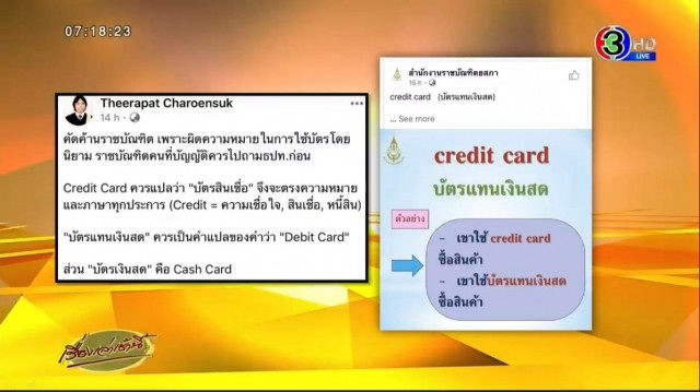 นักเขียนโพสต์ค้าน ราชบัณฑิตฯบัญญัติคำศัพท์ เครดิตการ์ด ให้เรียกคำไทย บัตรแทนเงินสด