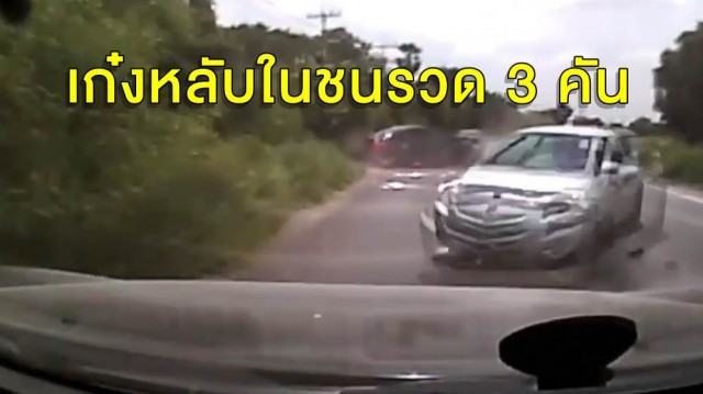 เก๋งหลับในแหกโค้งชนรวด 3 คันที่อยุธยา หญิงท้องหวิดดับ