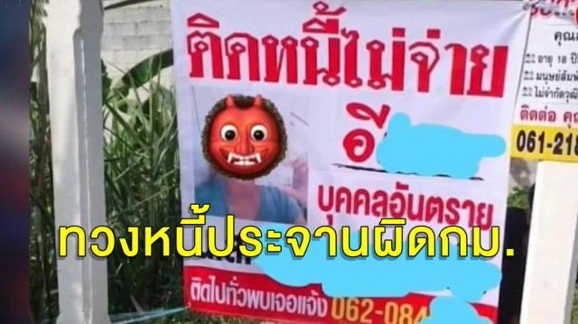 เจ้าหนี้ติดป้ายไวนิล ประจานลูกหนี้โชว์รูป-เบอร์โทร ทนายเตือนอย่าเอาสะใจ อาจถูกฟ้องกลับแทน