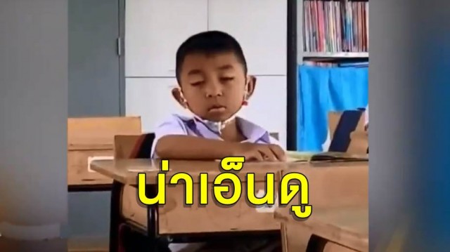 ภาพความน่ารักของหนูน้อยนักเรียนชั้น ป.1 ที่คุณครูบันทึกภาพไว้ได้ขณะที่นั่งเรียนในห้อง โดยหนูน้อยคนนี้เพิ่งเลื่อนชั้นมาจากอนุบาล ทำให้ยังไม่ชิน เพราะเคยนอนกลางวัน พอนั่งเรียนในช่วงบ่าย จึงเกิดอาการง่วง นั่งสัปหงกอย่างที่เห็น เรียกเสียงฮาและความเอ็นดูจากชาวเน็ต