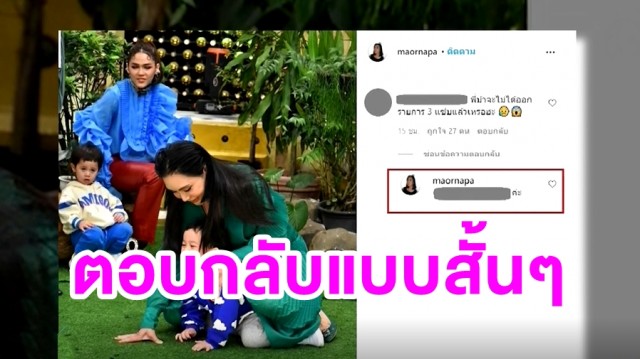 ซึ่งต่อมารายการ “ข่าวใส่ไข่” ก็เป็นรายการแรกที่ออกมาประกาศว่า “พี่ม้า อรนภา” จะยุติบทบาทในการทำหน้าที่พิธีกร และนอกจากนี้ยังมีคนเข้าไปถาม “พี่ม้า" ในอินสตาแกรมต่อด้วยว่า “พี่ม้า” จะไม่ได้มาเป็นพิธีกรในรายการ 3 แซ่บอีกแล้วใช่หรือไม่ ซึ่ง “พี่ม้า” เองก็ได้เข้าไปตอบกลับคอมเมนต์ดังกล่าวสั้นๆว่า “ค่ะ” เป็นคำตอบสั้นๆ แต่ก็ถือว่าค่อนข้างชัดเจนเลยทีเดียว