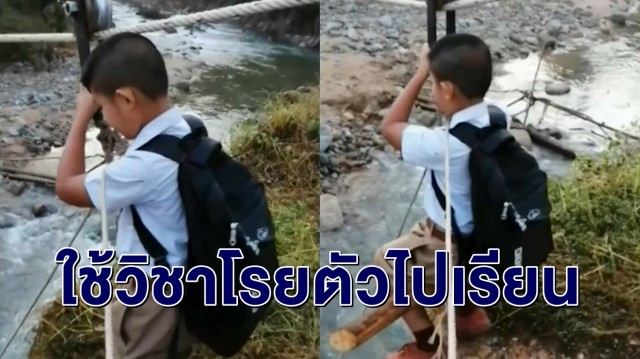 น้ำก็ท่วม แต่ รร.ก็ต้องไป! ชาวเน็ตเมืองคอนแชร์คลิปเด็กนร. ต้องโหนรอกข้ามแม่น้ำ เหตุสะพานพัง