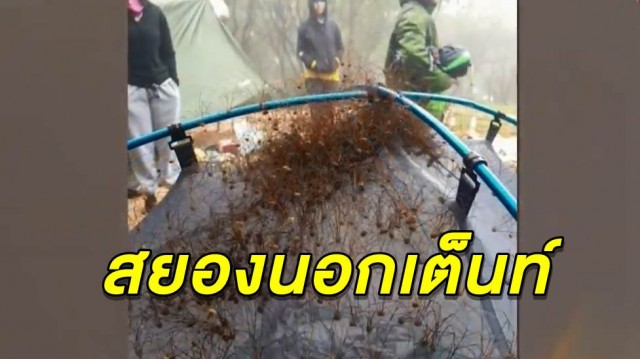เตือนภัยสายแคมป์ปิ้ง! สัตว์ประหลาดคล้ายแมงมุม รวมตัวนับร้อยโผล่หลังคาเต็นท์