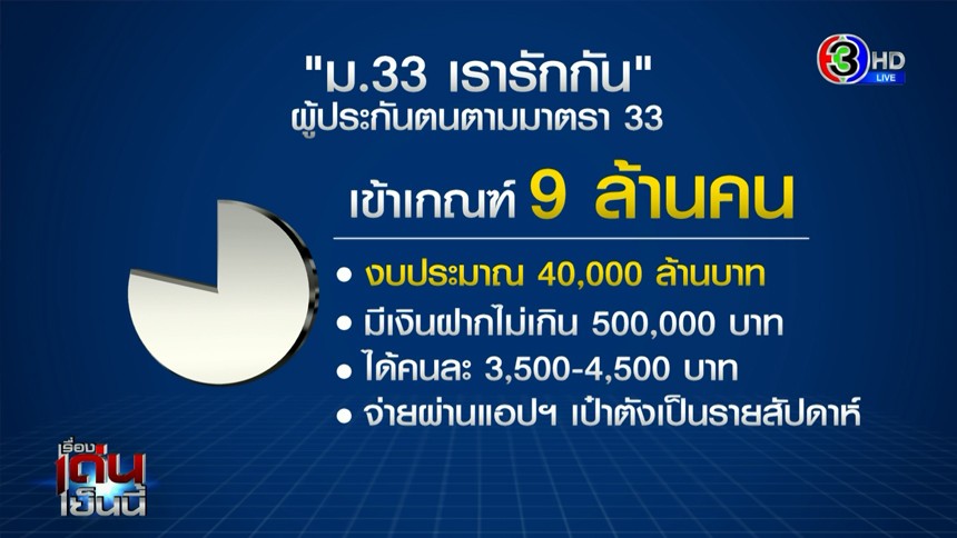 ผู้ประกันตน ม.33 เฮ นายกฯเคาะช่วยเยียวยาโควิด - 19 ถ้วนหน้า “ม.33 เรารักกัน” ใช้เกณฑ์เดียวโครงการเราชนะ เงินฝากไม่เกิน 5 แสน คาดเข้าหลักเกณฑ์กว่า 9 ล้านคน นำเข้า ครม.อังคารหน้า (9 ก.พ.64)