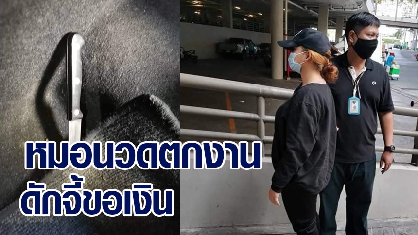 สาวนวดแผนไทยตกงาน คว้ามีดปอกผลไม้จี้ชิงเงินสาวขณะนั่งอยู่ในรถยนต์ ก่อนจะถูก รปภ.ตาดี ช่วยไว้ได้ทัน