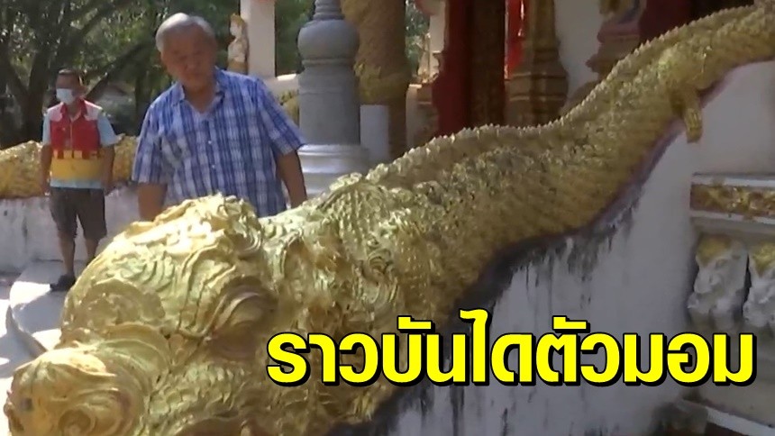 ทำให้นักท่องเที่ยวที่มักเดินทางในช่วงวันหยุดยาว หากเดินทางเข้าโบสถ์ที่มีราวบันไดแปลก ลำตัวยาว มีขา คล้ายพญานาค ก็ไม่ต้องแปลกใจ เพราะนั่นคือ มอม สัตว์ที่มีอิทธิฤทธิ์ คุ้มครอง จรรโลงศาสนาและคุ้มครองผู้กราบไหว้บูชา ไม่ค่อยพบเจอที่ไหนมาก่อนนั้นเอง