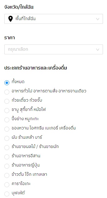 ทั้งนี้ ผู้ได้รับสิทธิ สามารถกำหนดหมวดหมู่ราคาที่จะใช้บริการ และหากเป็นประเภทร้านอาหารและเครื่องดื่ม ก็จะมีให้เลือกกำหนดประเภทอาหารด้วย