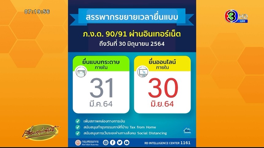 ทั้งนี้ตามมาตรา 56 แห่งประมวลรัษฎากร ภายในวันที่ 31 มีนาคม 2564 หากพ้นกำหนดจะต้องถูกดำเนินการตามกฎหมายต่อไป