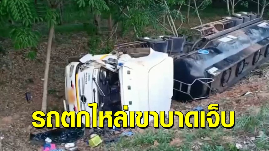 ฉะเชิงเทรา-คนขับรถพ่วง 18 ล้อ เอื้อมกดรับโทรศัพท์ รถเสียหลักตกไหล่เขายาย กระเด็นออกนอกรถ เจ็บสาหัส