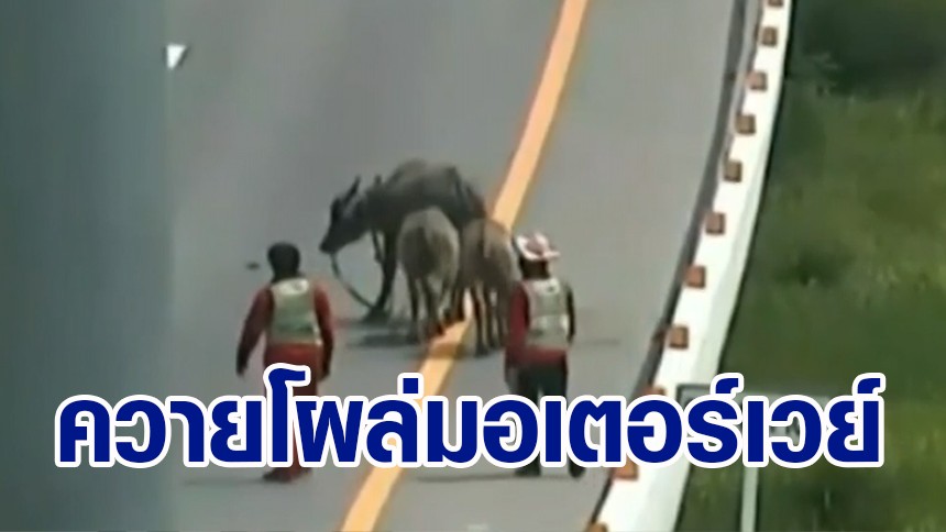 แตกตื่น! ควาย 3 แม่ลูกหลงขึ้นมอเตอร์เวย์ สาย 9 ทำรถติดยาว ล่าสุดเจ้าของติดต่อเข้ารับตัวแล้ว