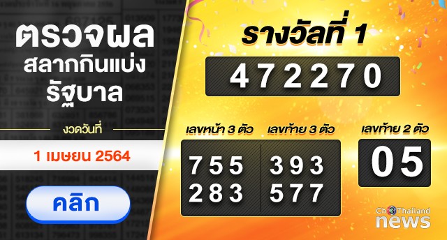 ผลสลากกินแบ่งรัฐบาล งวดวันที่ 1 เมษายน 2564