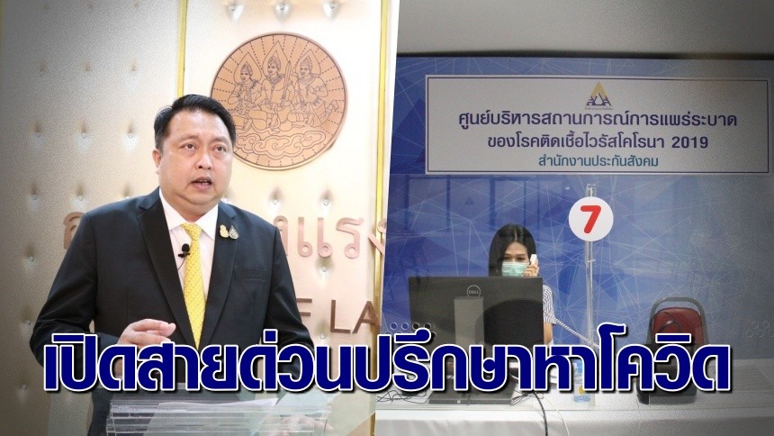 นายสุชาติ ชมกลิ่น รัฐมนตรีว่าการกระทรวงแรงงาน เป็นประธาน เปิดศูนย์บริหารสถานการณ์การแพร่ระบาดของโควิด-19 ของสำนักงานประกันสังคม หรือ สปส. และสายด่วน 1506 กด 6 เพื่อเป็นช่องทางติดต่อคำแนะนำแก่ผู้ประกันตน ที่ไม่สามารถหาสถานที่ตรวจและสถานพยาบาลเข้ารับการรักษาในกรณีติดเชื้อได้ โดยจะให้คำแนะนำผู้ประกันตนตรวจหาเชื้อโควิด-19