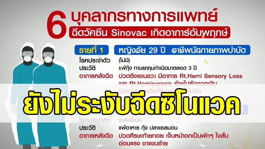ยังไม่ระงับฉีดซิโนแวค หลังพบ 6 บุคลากรทางการแพทย์ เกิดอาการอัมพฤกษ์ชั่วคราว