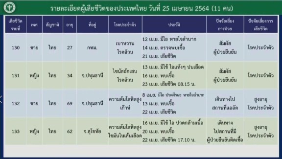 - กลุ่มผู้ที่อายุน้อย มีอัตราการเสียชีวิตเพิ่มขึ้น มีโรคประจำตัวและมีภาวะอ้วน