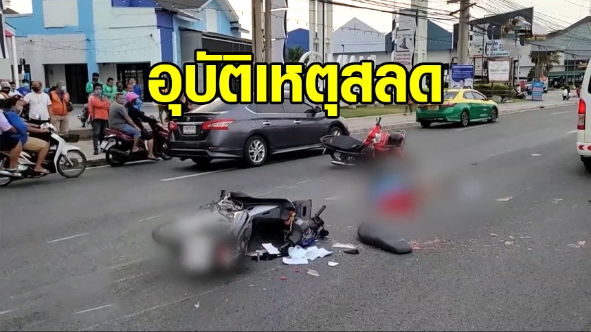 จยย.หักหลบเก๋งพุ่งปาดหน้า ชนจยย.อีกคันล้ม คนซ้อนกระเด็นถูกพ่วง 18 ล้อทับหัวดับ