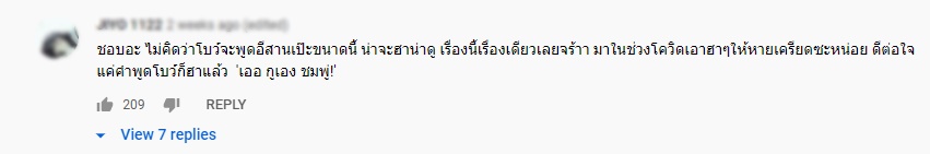 บ้างก็ระบุว่า “ชอบอะ ไม่คิดว่าโบว์จะพูดอีสานเป๊ะขนาดนี้ น่าจะฮาน่าดู เรื่องนี้เรื่องเดียวเลยจร้าา มาในช่วงโควิดเอาฮาๆให้หายเครียดซะหน่อย ดีต่อใจ แค่คำพูดโบว์ก็ฮาแล้ว 'เออ กูเอง ชมพู่!' ” , ขำโบว์อะ 55555 น่ารัก ขณะที่บางคนก็บอกว่า “ป๊าดดด!! ข้อยถ่าเบิ่งซุมเจ้าเด้อ โบว์เล่นแนวนี่เป็นตาม่วนแท้พี่น้องชาวอีสาน สวดๆ!”