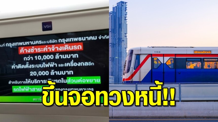 แชร์สนั่น 'บีทีเอส' ขึ้นจอทวงหนี้นายกฯ รวม 3 หมื่นล้าน