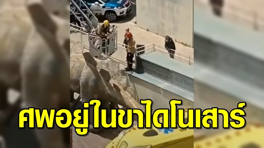 หนุ่มสเปนหายตัวปริศนา ก่อนพบศพติดอยู่ในขาไดโนเสาร์ คาดลงไปเก็บมือถือ แต่ปีนขึ้นมาไม่ได้