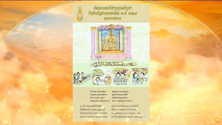 พระบาทสมเด็จพระเจ้าอยู่หัว ทรงพระกรุณาโปรดเกล้าโปรดกระหม่อมพระราชทาน บัตรอวยพรวิสาขบุรณมีบูชา วันสำคัญสากลของโลก พุทธศักราช 2564 พระราชทาน
