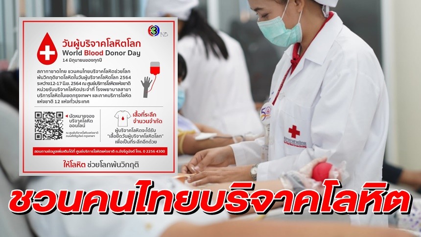 สภากาชาดชวนคนไทยบริจาคโลหิต รับเสื้อยืดที่ระลึก เนื่องในวันผู้บริจาคโลหิตโลก 14 มิ.ย.