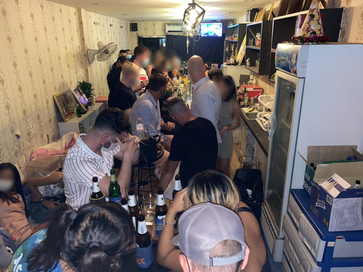 โดยตำรวจเข้าไปตรวจสอบในเวลาประมาณ 2 นาฬิกา พบนักท่องเที่ยวรวมกว่า 31 คน เป็นผู้ชาย 14 คน และหญิง 17 คน นั่งรับทานอาหารและเครื่องดื่มแอลกอฮอล์ จึงได้ควบคุมตังทั้งหมดมาสอบสวน และดำเนินคดีในข้อหา ฝ่าฝืน พ.ร.ก.ฉุกเฉินฯ และพ.ร.บ.ควบคุมโรค