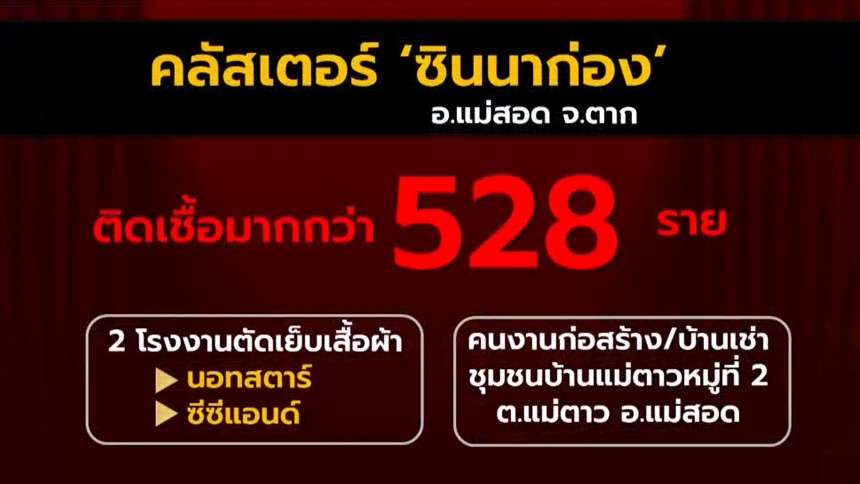 แม่สอดยอดพุ่ง คลัสเตอร์ ‘ซิ่นนาก่อง’ จาก 2 โรงงานตัดเย็บเสื้อผ้า ติดเชื้อแล้ว 528 ราย