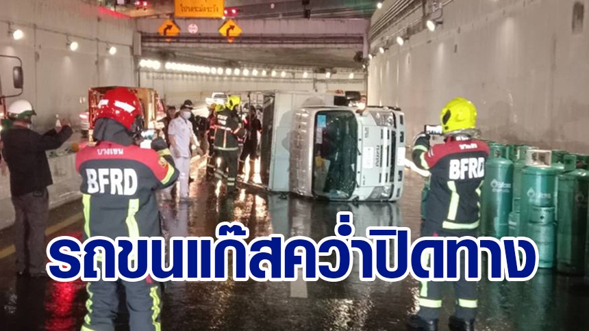 เมื่อเวลา 19.49 น. ของวันที่ 29 มิ.ย.64 ศูนย์วิทยุพระรามรับแจ้งเหตุรถบรรทุกแก๊สพลิกคว่ำ บริเวณอุโมงค์เกษตรมุ่งหน้าลาดปลาเค้า แขวงลาดยาว เขตจตุจักร เจ้าหน้าที่สถานีดับเพลิงและกู้ภัยบางเขน จึงเดินทางไปตรวจสอบที่เกิดเหตุ