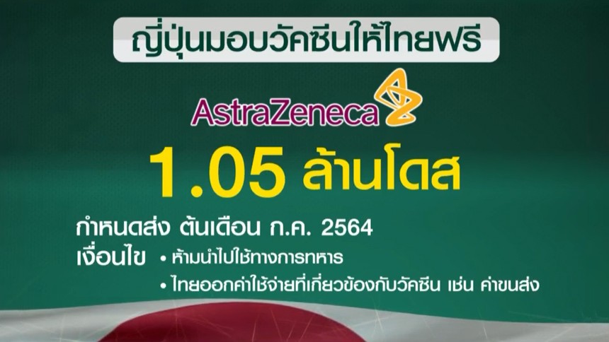 ญี่ปุ่นมอบ 'แอสตราเซเนกา' ให้ไทย 1.05 ล้านโดส เผยเงื่อนไขห้ามใช้ในทางการทหาร