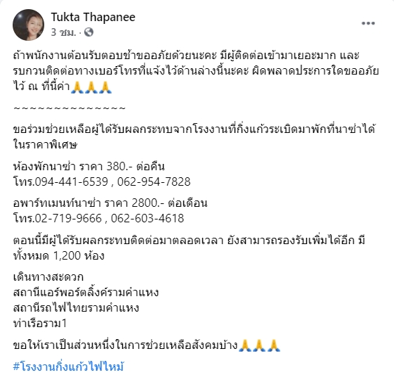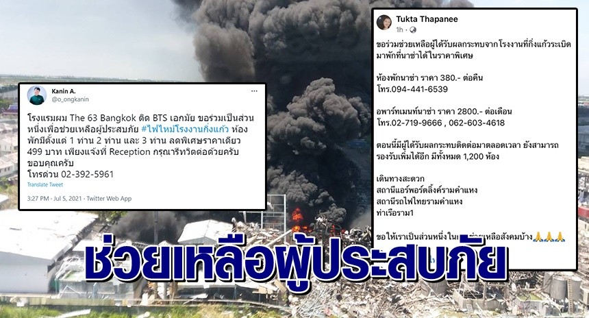 ผู้ประกอบกิจการโรงแรมที่พัก ประกาศช่วยเหลือผู้ประสบภัย #โรงงานกิ่งแก้วไฟไหม้ เข้าพักราคาพิเศษ