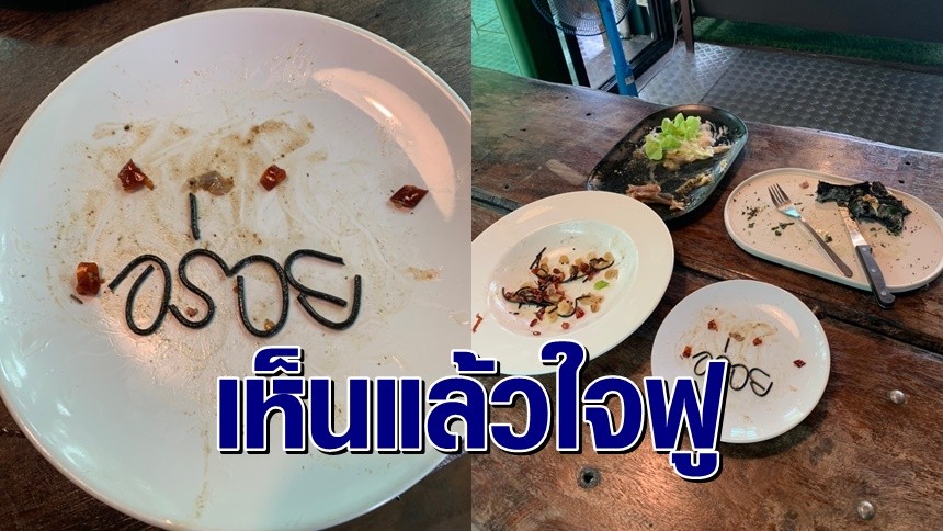 เห็นแล้วต้องยิ้ม เจ้าของร้านถึงกับใจฟู เมื่อลูกค้าบรรจงจัดเส้นสปาเก็ตตี้เขียนคำว่า 'อร่อย'