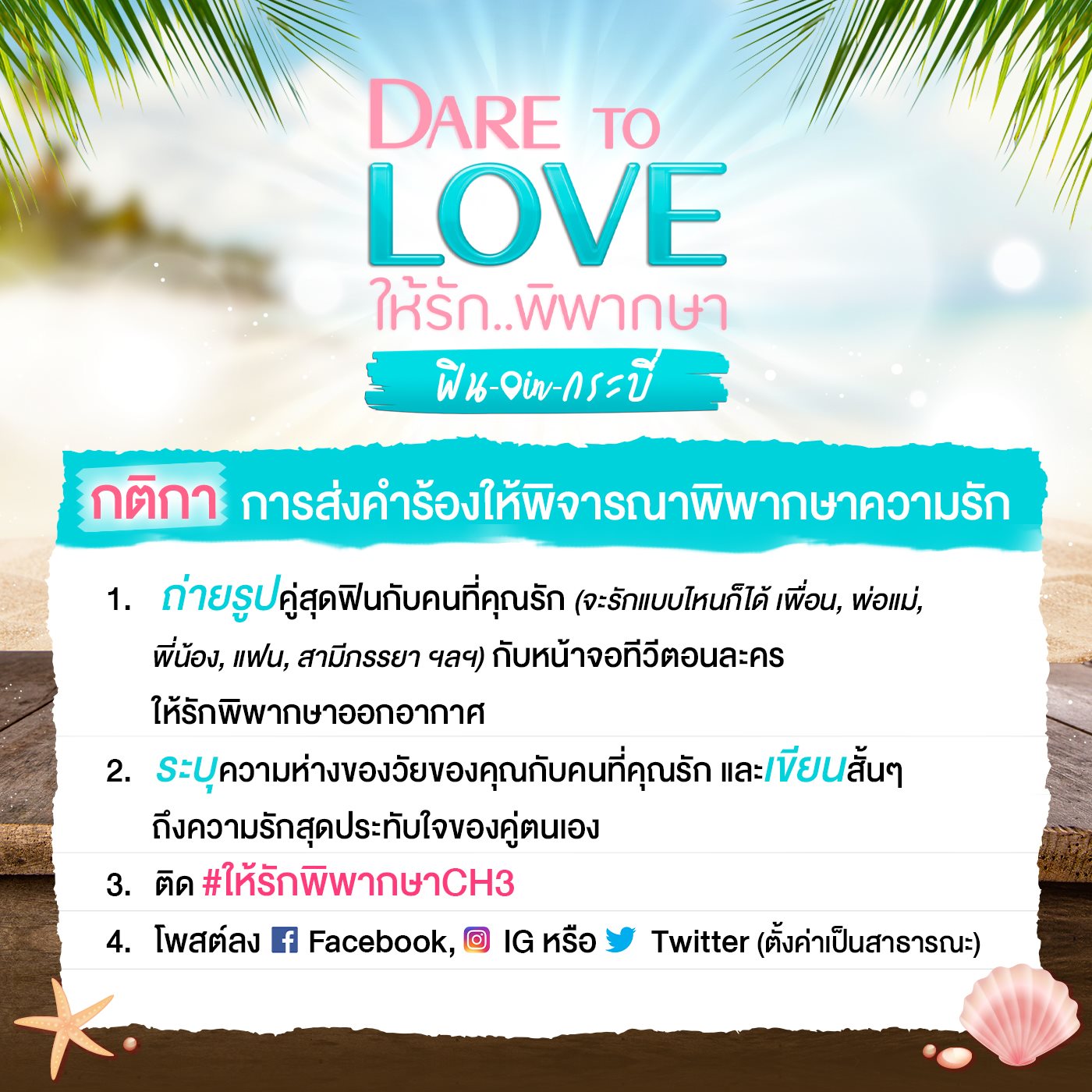 สร้างไวรัลฉากฟินหวานๆ กางร่มตากฝนเต็มโลกโซเชียลไปเลยจุกๆ สำหรับละครหวานรักต่างวัยแห่งปี2021 “Dare To Love ให้รักพิพากษา” ผลงานการผลิตของ “ค่ายชลลัมพีโปรดั๊กชั่น” ทางช่อง 3 กด 33 ที่ได้นางเอกสาวเจ้าแม่พรีเซนเตอร์ ‘เบลล่า-ราณี’ ปรุงเคมีรสชาติใหม่ ดันพระเอกน้องใหม่ป้ายแดง ‘กองทัพ พีค’ โดนตกกันไปตามระเบียบ