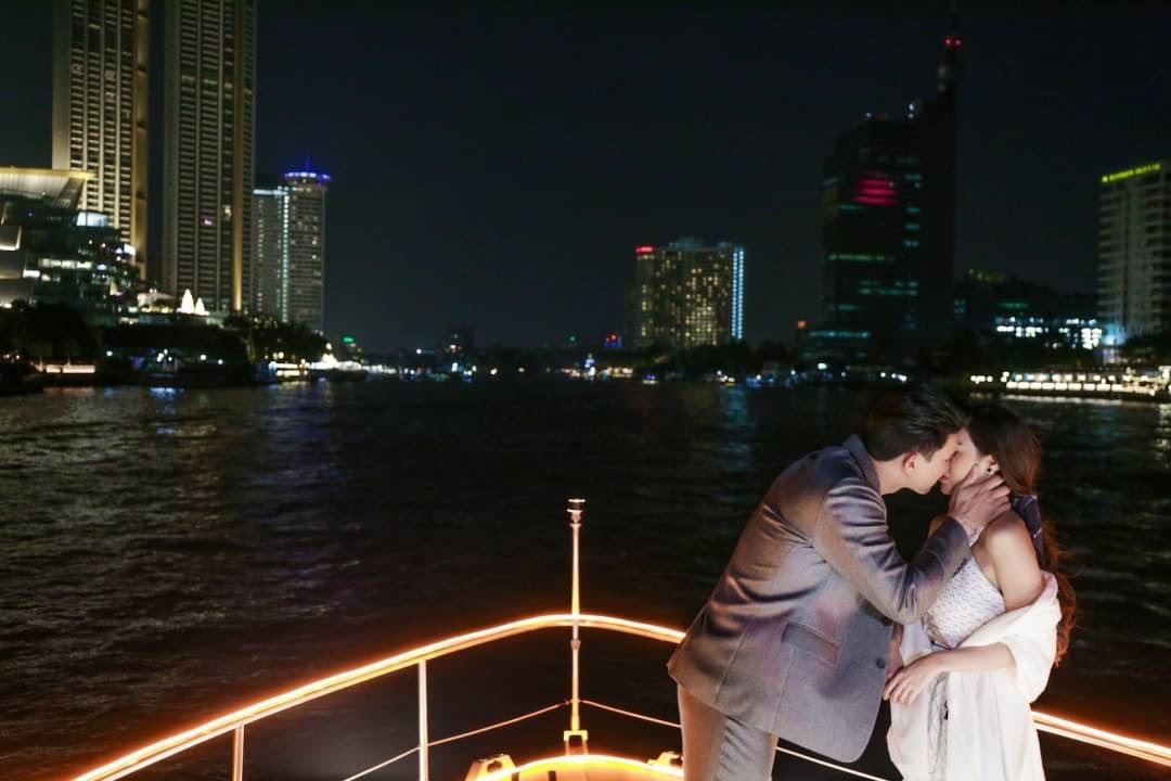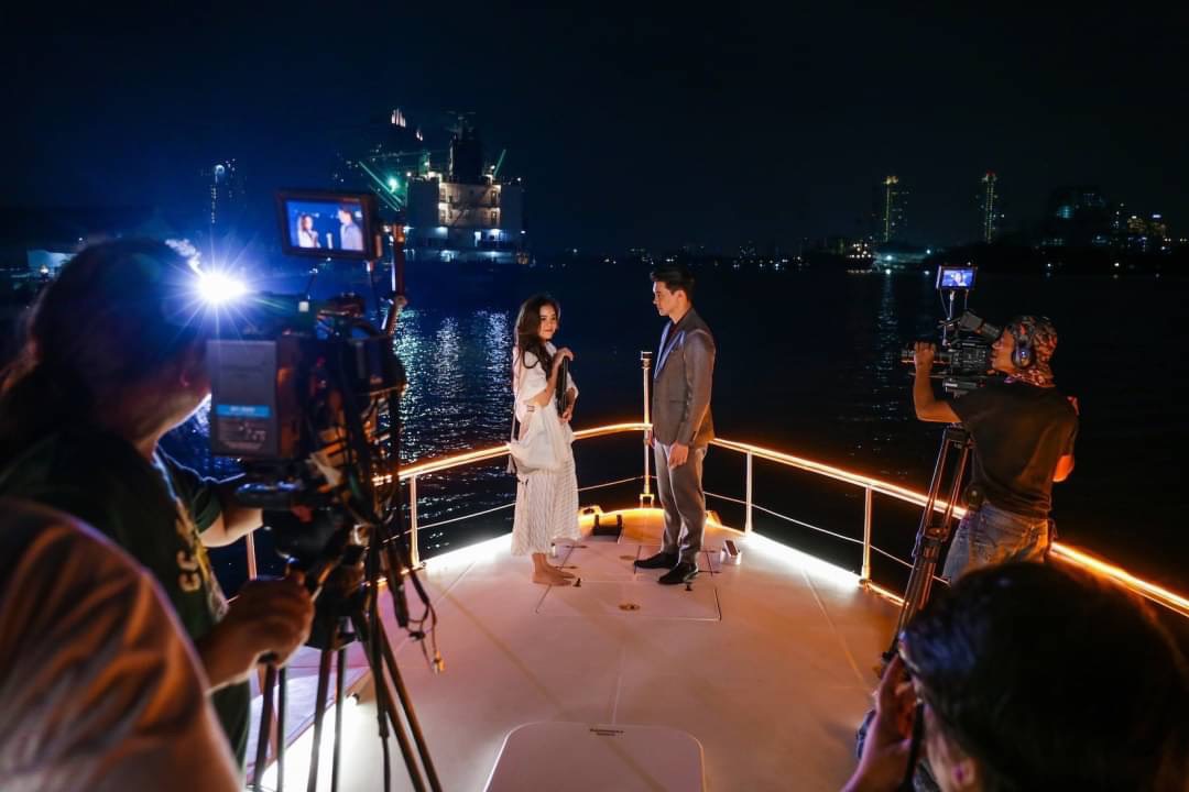 เบื้องหลังฉากนี้ถ่ายทำกับบนเรือยอร์ชกลางแม่น้ำเจ้าพระยา ซึ่งทาง “พี่ต้อง” จุลวุฒิ ชลลัมพี ผู้จัดฯ ได้เสกความโรแมนติกท่ามกลางวิวของแม่น้ำเจ้าพระยาให้สมกับฉากหวานของพระนาง แต่บอกเลยว่าการถ่ายทำไม่ง่ายอย่างที่คิด เพราะทั้งนักแสดงและทีมงานต้องสู้กับคลื่นน้ำและลมที่แรงเรียกได้ว่าเป็นอุปสรรคสำคัญของฉากนี้เลยก็ว่าได้ แต่ทุกคนก็สู้เพื่อให้ได้ภาพสวยงามสุดโรแมนติกมาฝากแฟน ๆ ละคร