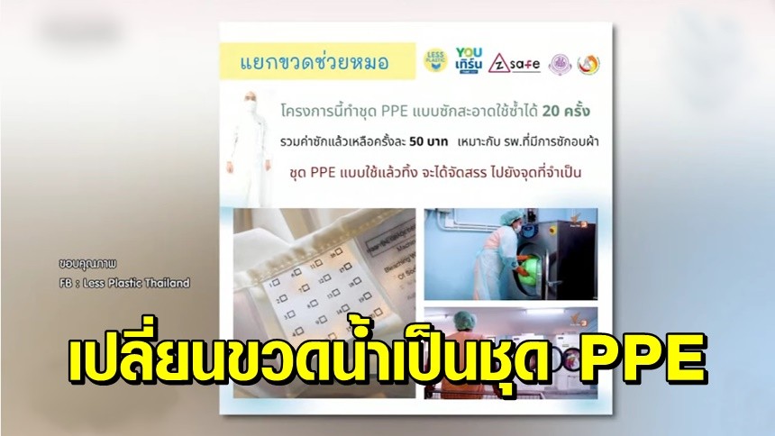โครงการ 'แยกขวด ช่วยหมอ' เปิดรับบริจาคขวดพลาสติกใช้แล้ว (ขวด PET) เผย 18 ขวด ทำชุด PPE ได้ 1 ชุด