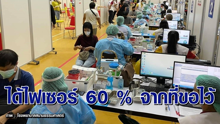 รพ.สนามธรรมศาสตร์ ระบาย ได้รับ 'ไฟเซอร์' ร้อยละ 60 ไม่ถึงครึ่งของด่านหน้าที่ทำงานตอนนี้